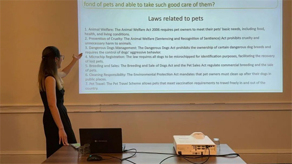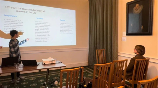 结业答辩现场,同学们结合PPT回顾了近一周来在英国的所见所闻所感,并详细介绍了调查问卷所得数据及结论。每一组都展现了他们饱满的热情,每一张PPT都凝结着他们的努力。Alan Macfarlane教授对每组的展示进行评论,对同学们的表现赞赏有加。最后,每位同学都顺利获得了结业证书。